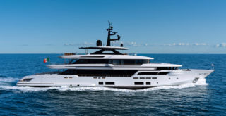 Wherever the owner eventually cruises, he’ll have diving equipment and watertoys at his disposal. A Williams jet tender and PWC are being stowed forward just beneath the main deck. The way that Drettmann Yachts and Focus Yacht Design are offsetting the interior spaces is also allowing for a beach club that includes a lounge and sauna. The 7’2” (2.2-meter) draft should ensure that the beach club, toys, and more are put to good use in a variety of ports.