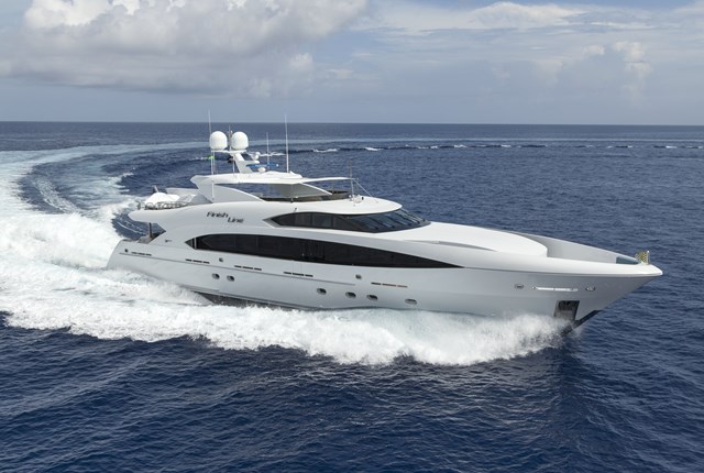 Finish Line is powered by twin 2,600-hp MTU 16V 2000 M94 diesels. Trinity Yachts recommended the package to the owner and Billy Lockhart, the yacht’s captain and project manager. Why? The engines pack a punch in a smaller footprint than some other engine manufacturers’ offerings. Trinity Yachts averred that Finish Line would therefore see a 23-knot maximum speed. Lockhart confirms it, adding that Finish Line has also exceeded the speed by one knot. That performance has served the megayacht well, made even more thrilling in the skinny waters of the Bahamas. Finish Line draws 5’6” (1.7 meters).