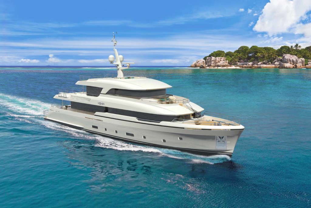 The Martinique features a steel hull and aluminum superstructure, in keeping with Moonen’s typical build materials. The yard has used what it calls an “enhanced length principle” to ensure a good turn of speed. In brief, the principle pertains to building a yacht with a longer length without increasing weight or sacrificing fuel economy. The Martinique should see a 17-knot top end. Moonen has not released the anticipated fuel-burn figures.