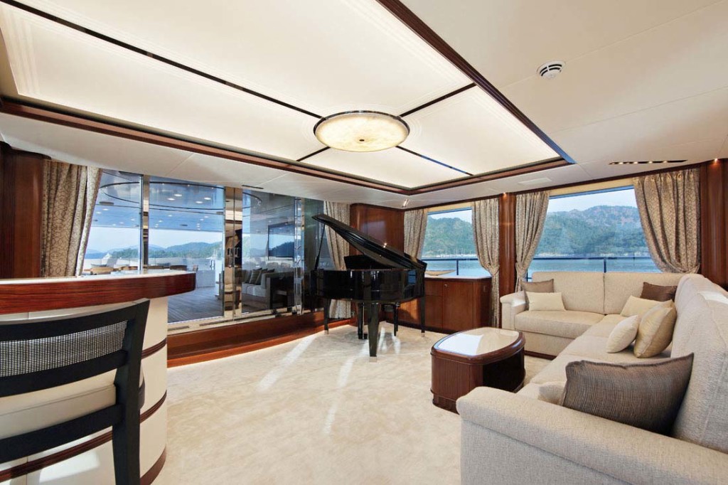 Then there’s the saloon, destined to host plenty of late-night fun due to a karaoke system and a grand piano. A separate seating area in the saloon suits movie nights, due to including a large TV.