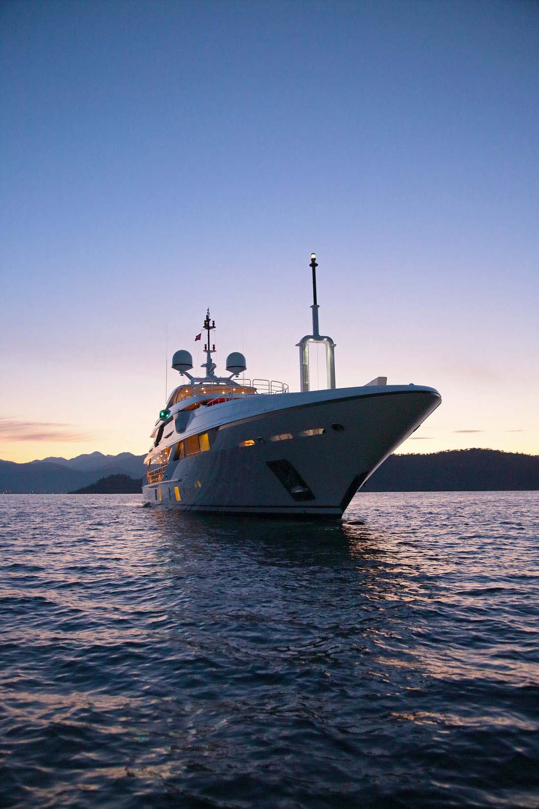 This photo gallery of Vica gives you a better look at her cherrywood-adorned spaces, highlighted by rosewood accents. You’ll also see wrought-iron detailing on the central stairway, a sundeck skylight that spills light down into the lower deck, and peeks at some of her five guest staterooms. Interior design was executed by Benetti and the owners’ decorator.