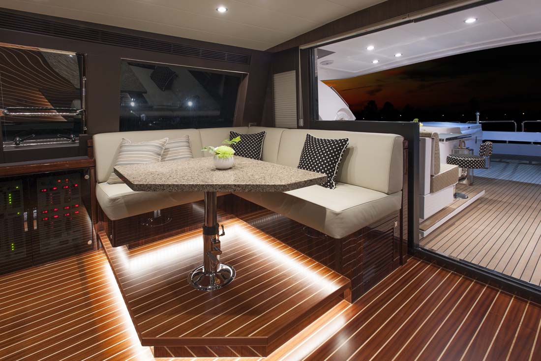 Horizon E88: Photo Gallery July 13, 2015 By: Megayacht News StaffThese photos are of the skylounge-equipped Horizon E88 just delivered to an American couple in time for their first summer season onboard. To read about how they customized their craft, see Another Horizon E88 U.S.-Bound. Related posts Megayacht News Onboard: Horizon E88 4 New Horizon E88 Motoryachts to Hit U.S. Shores Another Horizon E88 U.S.-Bound