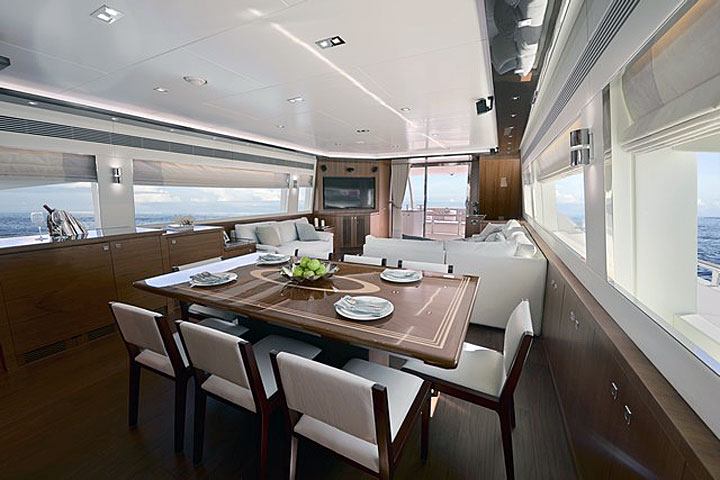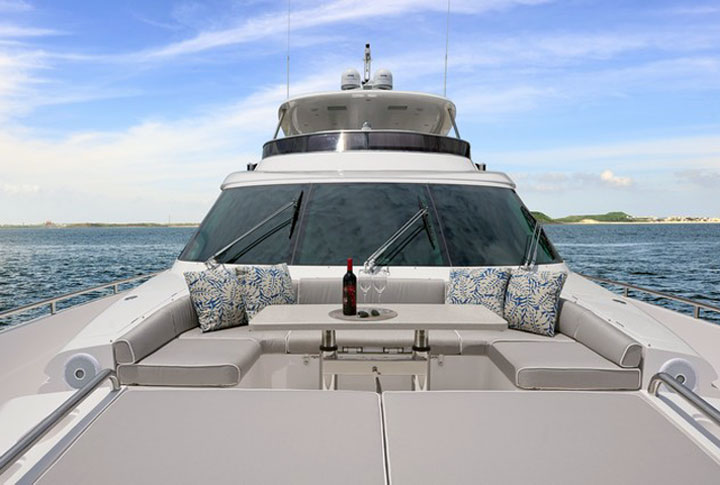Following the sale of several E88 Skylounge megayachts over the past five years, Horizon Yachts has done what its clients have come to expect: create a more alfresco-oriented model, based largely on their feedback. Naturally, she’s called the E88 Open Flybridge. Hull number one is heading for U.S. shores, too, for debut at the Fort Lauderdale International Boat Show (a.k.a. FLIBS).