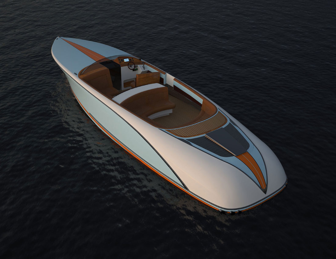 “I just had it inside me and had to get it out!” So says Bill Prince of Bill Prince Yacht Design regarding this sweet dayboat, which he’s designed as both the open version you see here and an enclosed limo tender. The Prince 40 was inspired by some of the most classic names in runabout history, like Riva and Garwood, with thoroughly modern amenities for today’s owners and guests.