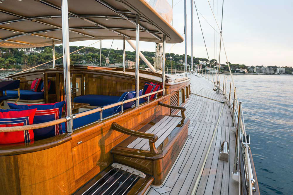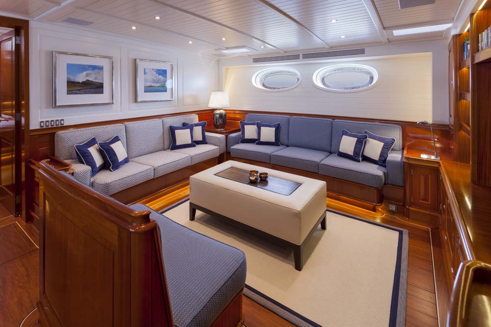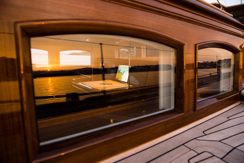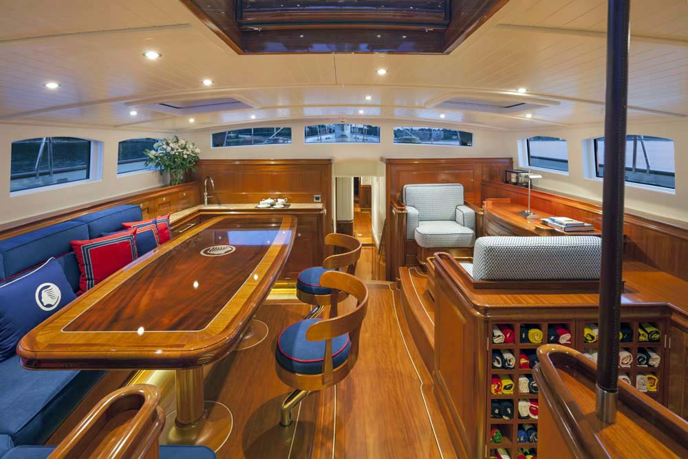 Enjoy this look aboard Atalante, from her teak-clad deckhouses to her cozy saloon.
