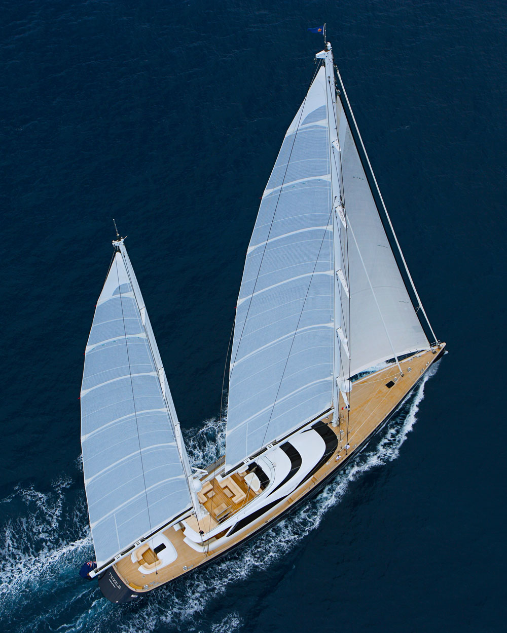 The recipient of both the “best sailing yacht, 40 meters +” and “best interior” awards from the International Superyacht Society within a year of her delivery, the 188’6” (57.49-meter) Twizzle has proven herself to be a spirited sailing superyacht. She raced in the 2011 St. Barths Bucket, competing again in 2012 and taking third place in her class. Twizzle was too busy in 2013 to race there again, having undertaken a circumnavigation with her owners. Following the completion of the global cruise, the flybridge ketch returned to St. Barths in 2014 and nabbed victory once again.
