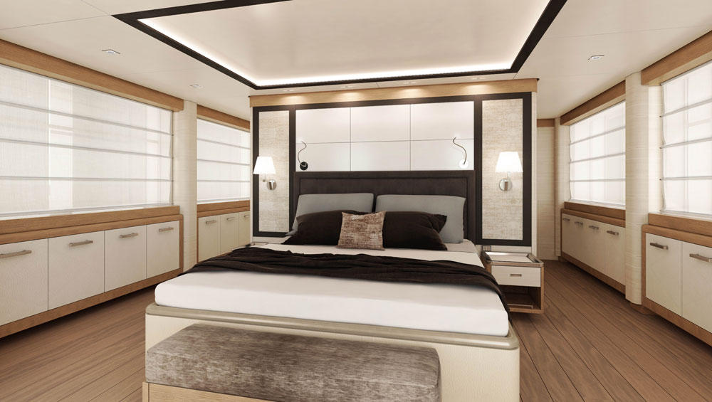 Constructed entirely of aluminum, Gipsy should have a displacement of 295 gross tons, a large volume for her LOA. Whether cruising in shallow waters in popular regions like the United States and Caribbean, or deep-water ports closer to home, Gipsy should see a 1,000-nautical-mile range at 11 knots. Top end (under one-third load) should be 22 knots.