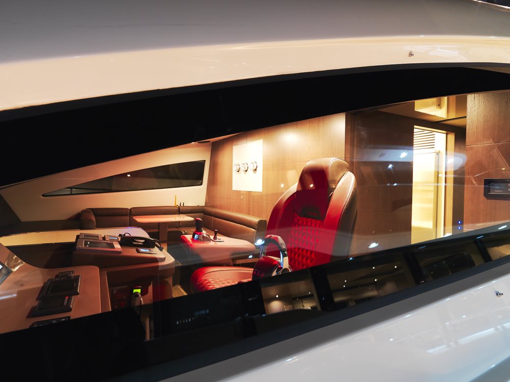Baccarat, like her sisters, was designed around the Volvo Penta IPS system. She’s equipped with triple 900-hp IPS 1200 engines, the most powerful offering in the IPS lineup. IPS is proven to have a 30-percent lower fuel compared to traditional-drive engines. It also increases range by about 40 percent compared to them. The Amer 94 series generally sees a top end of around 30 knots. Baccarat is in keeping with that, hitting a reported 28 knots.