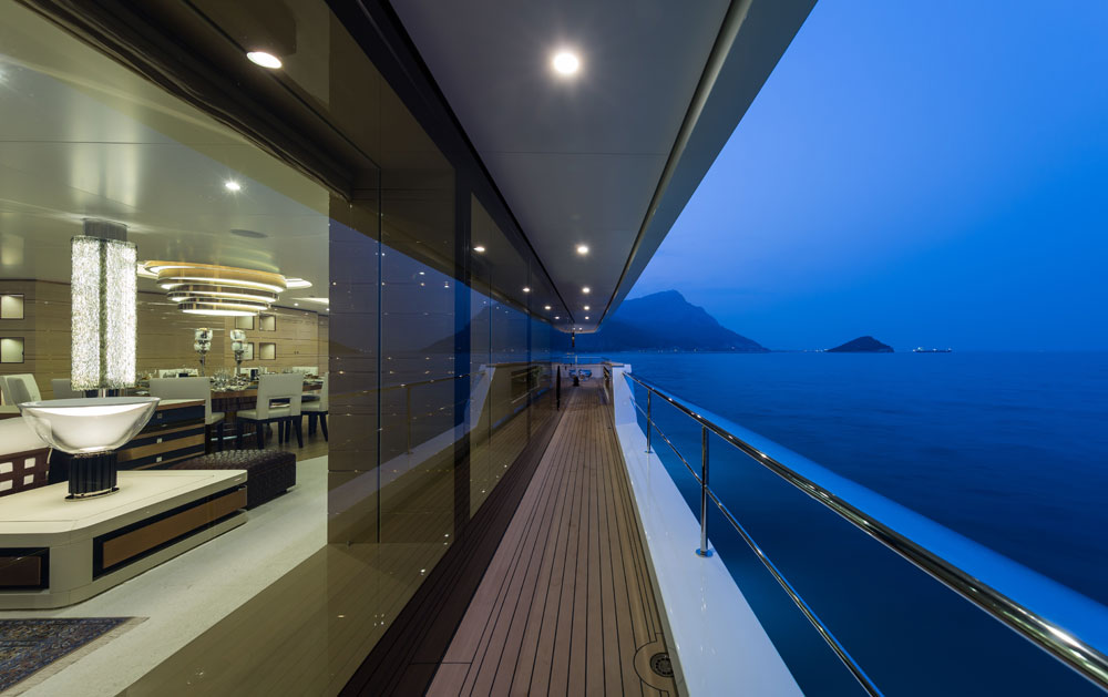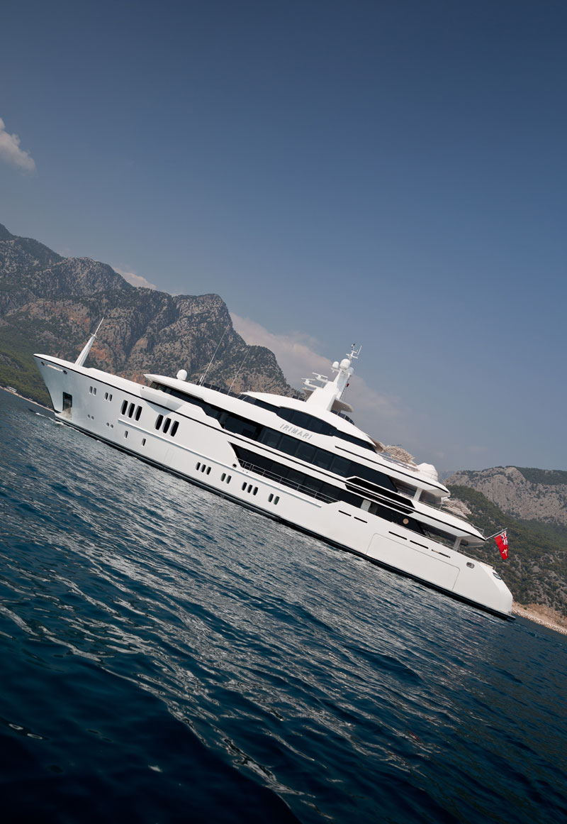 The merits of a megayacht are often put in terms of LOA. The common assumption is that the longer the yacht, the better the amenities. But, length is only part of the picture. Volume—measured as gross tonnage—is really the figure to focus upon. The reason: You can do quite a lot design-wise and therefore lifestyle-wise the greater the volume is. Related to this, tremendous volume need not be dependent upon an equally tremendous LOA. Irimari, delivered by Sunrise Yachts http://www.sunriseyachts.com this summer, proves this point quite well. Coming in at 207 feet (63.1 meters) LOA, she has a gross tonnage of 1,463. This makes Irimari the largest Sunrise project by volume thus far. And, she’s further one of the largest-volume projects to be built in Turkey.