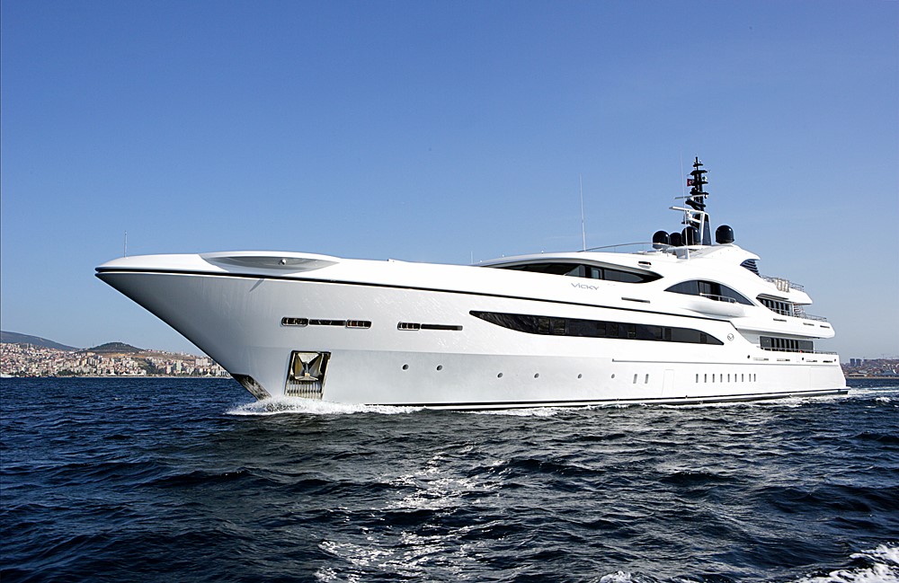 The 239-footer (73-meter) has been privately used since delivery in 2012 (by Proteksan Turquoise, now Turquoise Yachts). She was a frequent sight in the Med, where she’ll charter beginning in May. In fact, Adriatic and both eastern and Western Med destinations are all on Vicky’s inaugural charter itinerary.