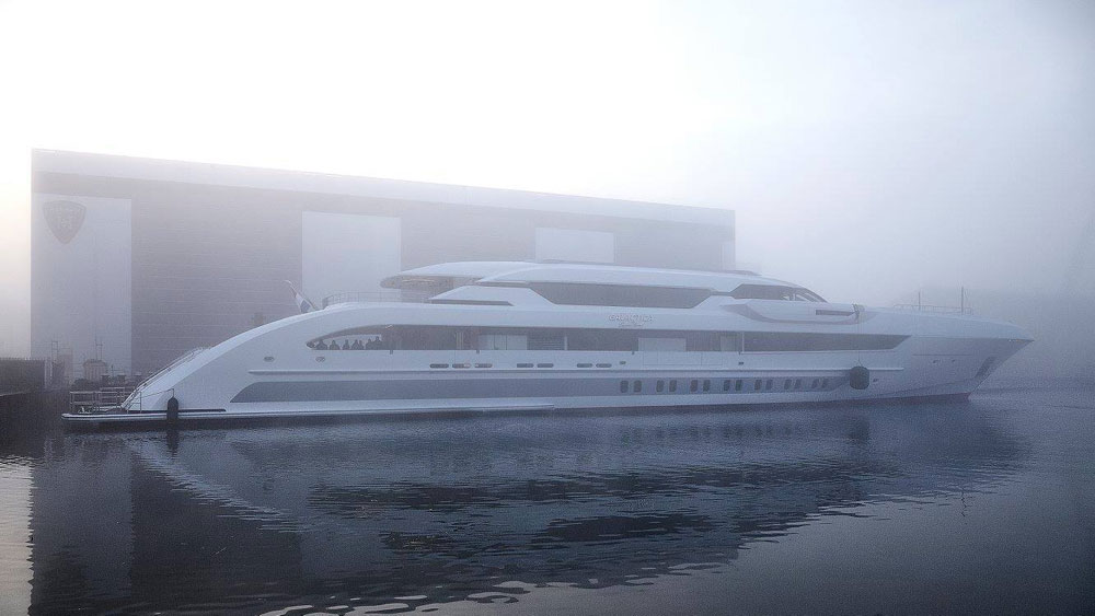 Fog can be a captain’s worst nightmare. But it was a photographer’s delight last week, as Galactica Super Nova departed Heesen’s shipyard.