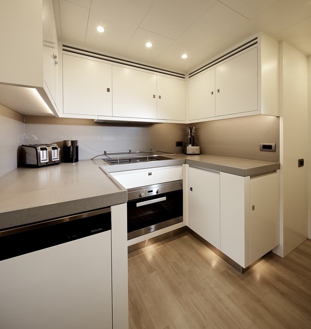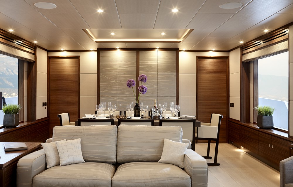 Bijoux’s owners were also attracted to Moonen’s usual approach of letting clients tailor configuration and design. Over numerous visits to the yard and with Adam Lay Studio, they achieved a comfortably casual atmosphere. It includes a main-deck VIP and full-beam master below.