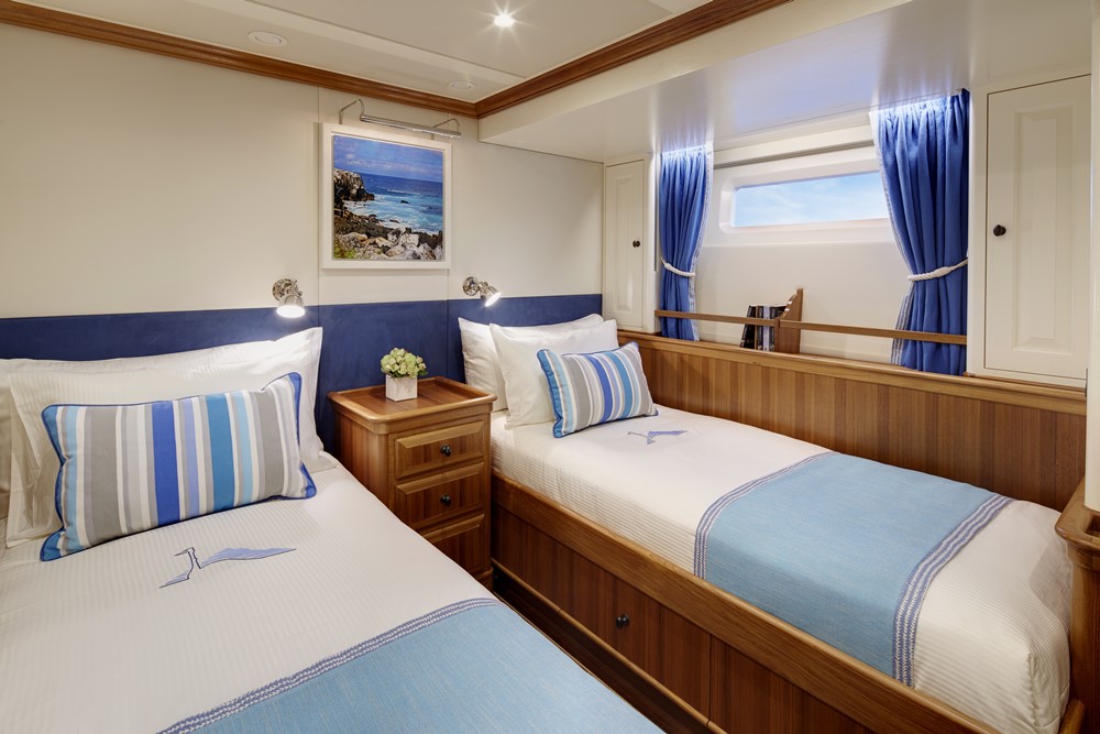 Overall, the interior of Cygnus Magnus is much like that of an open-plan home. While staterooms are private, of course, both fore and aft, the common areas are flowing spaces. Traditional colors and practical fabrics keep her ageless. Skylights in areas like the master let those aboard enjoy flowing, fresh breezes. It all comes together in an eminently family-friendly package.