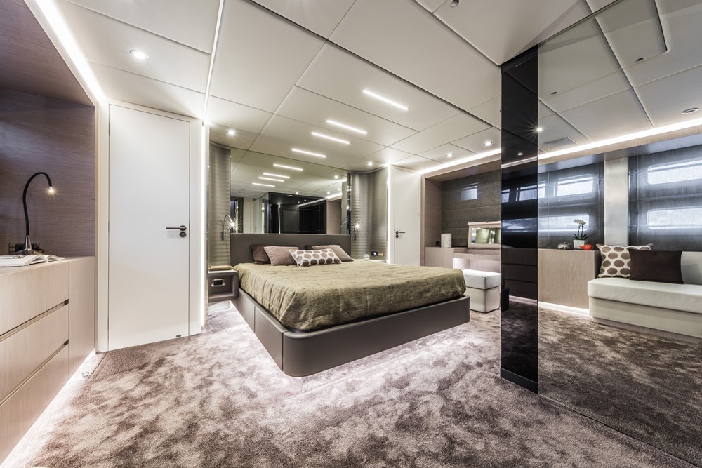 Having owned five previous yachts, they are familiar with what can and can’t be done within given time limits. In fact, the husband admits he and his wife doubted Bull could be delivered within the promised period. They signed the contract in March, one month after construction started. Bull was delivered on August 1, one day into a 12-day overtime allowance. The build period included change orders, too. The husband told the Canados craftspeople at delivery, “Today, I can say that we both can’t believe what we see. The respect of the delivery time, the incredible quality in the smallest details is beyond expectations! We are, today, very proud to be part of the Canados family.”