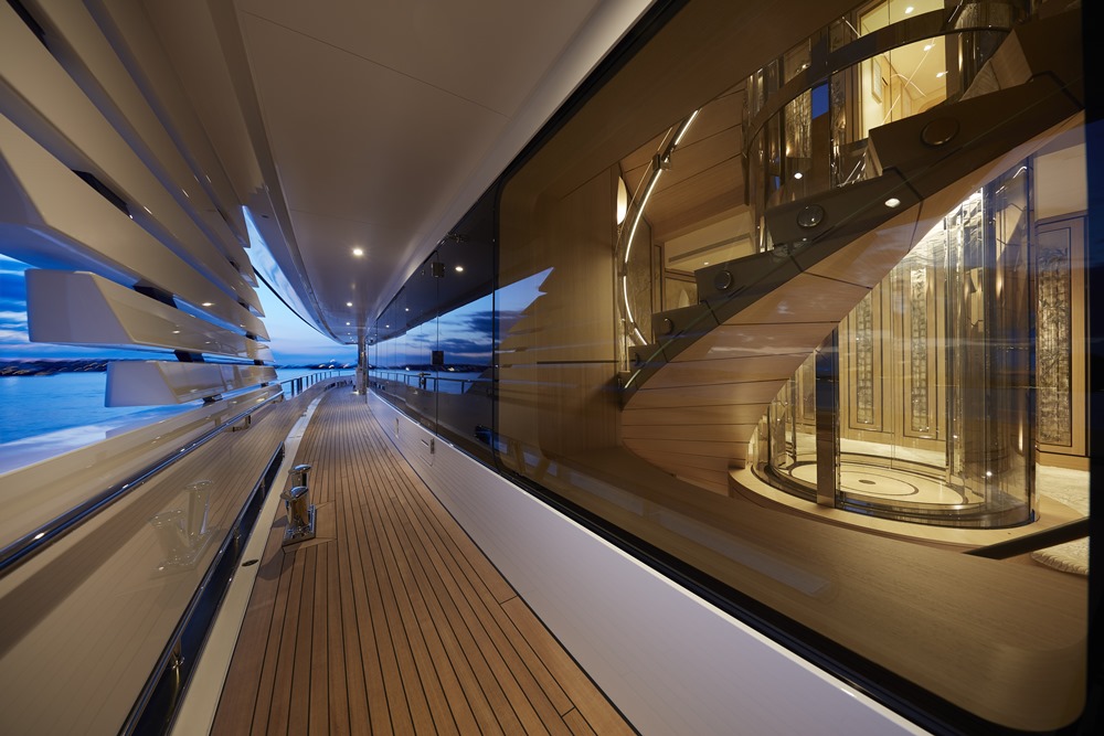 Through each of these, Joy has movement and, at risk of a pun, fluidity even when sitting still. Enjoy the art of architecture aboard this yacht.