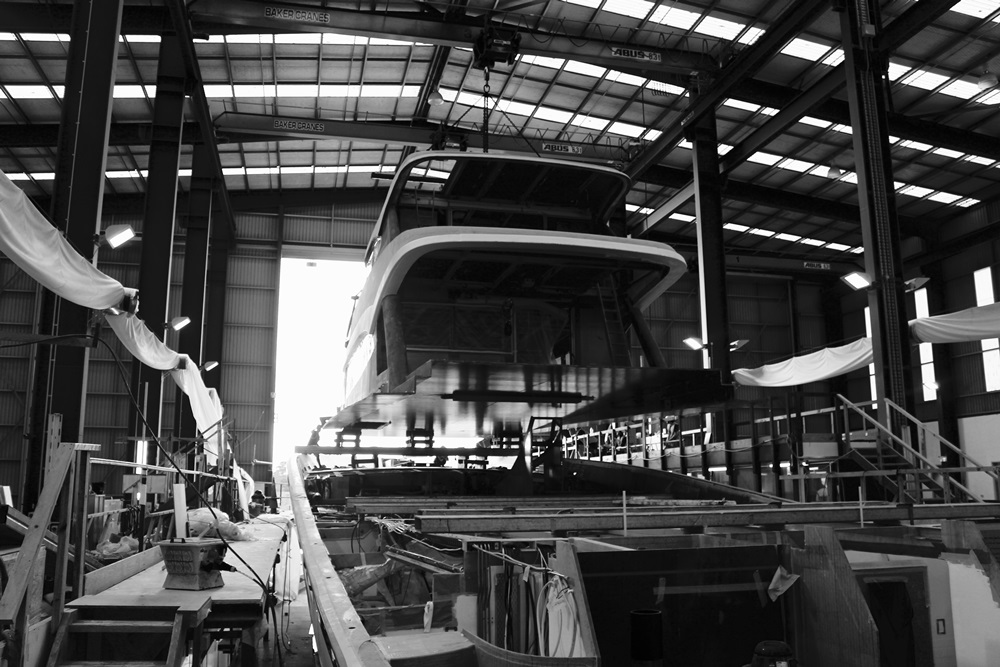 In the meantime, the slideshow below shows how Yachting Developments joined the hull and superstructure. The superstructure, in build in a separate bay, made the first move. It needed transferring from its bay, out through the doors, and back inside to the hull’s bay. The maneuvers took place on April 8.