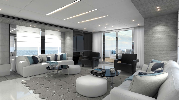 In addition, as you can tell from the renderings here, the overall interior, from Cristiano Gatto Design, reflects contemporary flair. Just like the 110 Century, the 100 Century is a semi-custom yacht, so owners get to select woods and other materials.