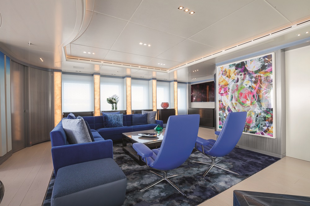 Some of our selections, listed in alphabetical order, may not float your boat (pun intended). To be clear, this list isn’t a “best of” or “prettiest decor” compilation. Beauty is, after all, in the eye of the beholder. Rather, we’re including superyacht interior designs that do a few different things. Some surprise with their mix of unusual materials. Others are downright divergent. In the end, all will get you, and others, talking.