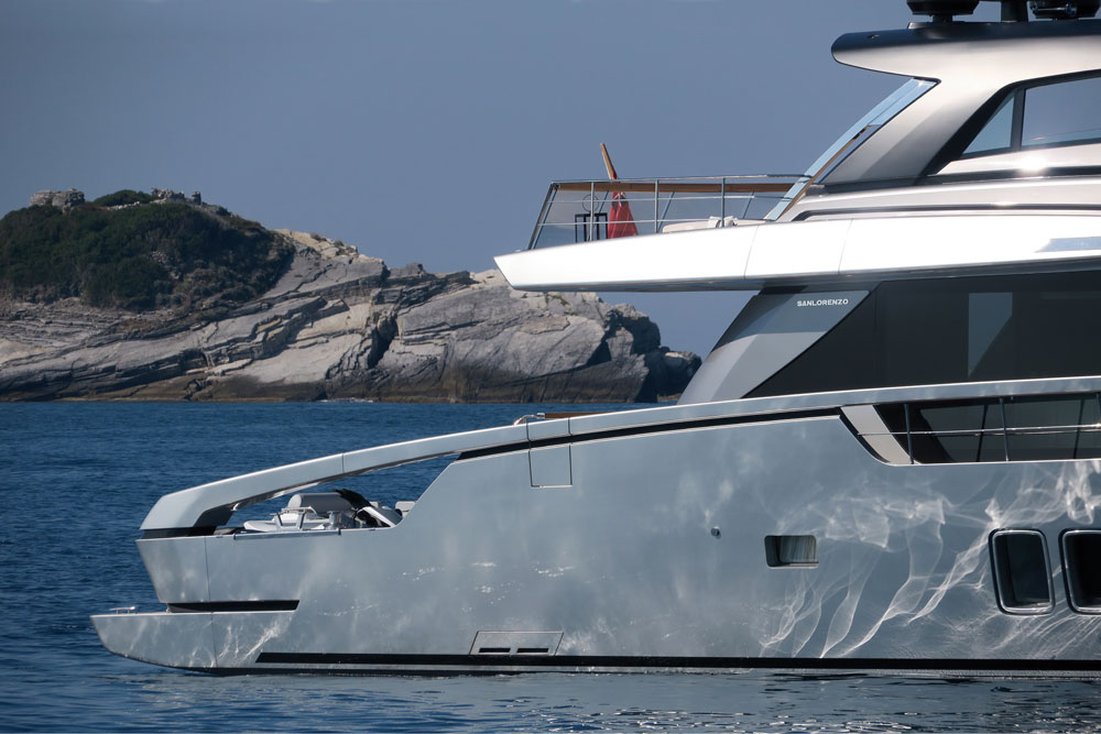 Here’s more of the Sanlorenzo SX88, whose performance permits a reported max speed of 23 knots.