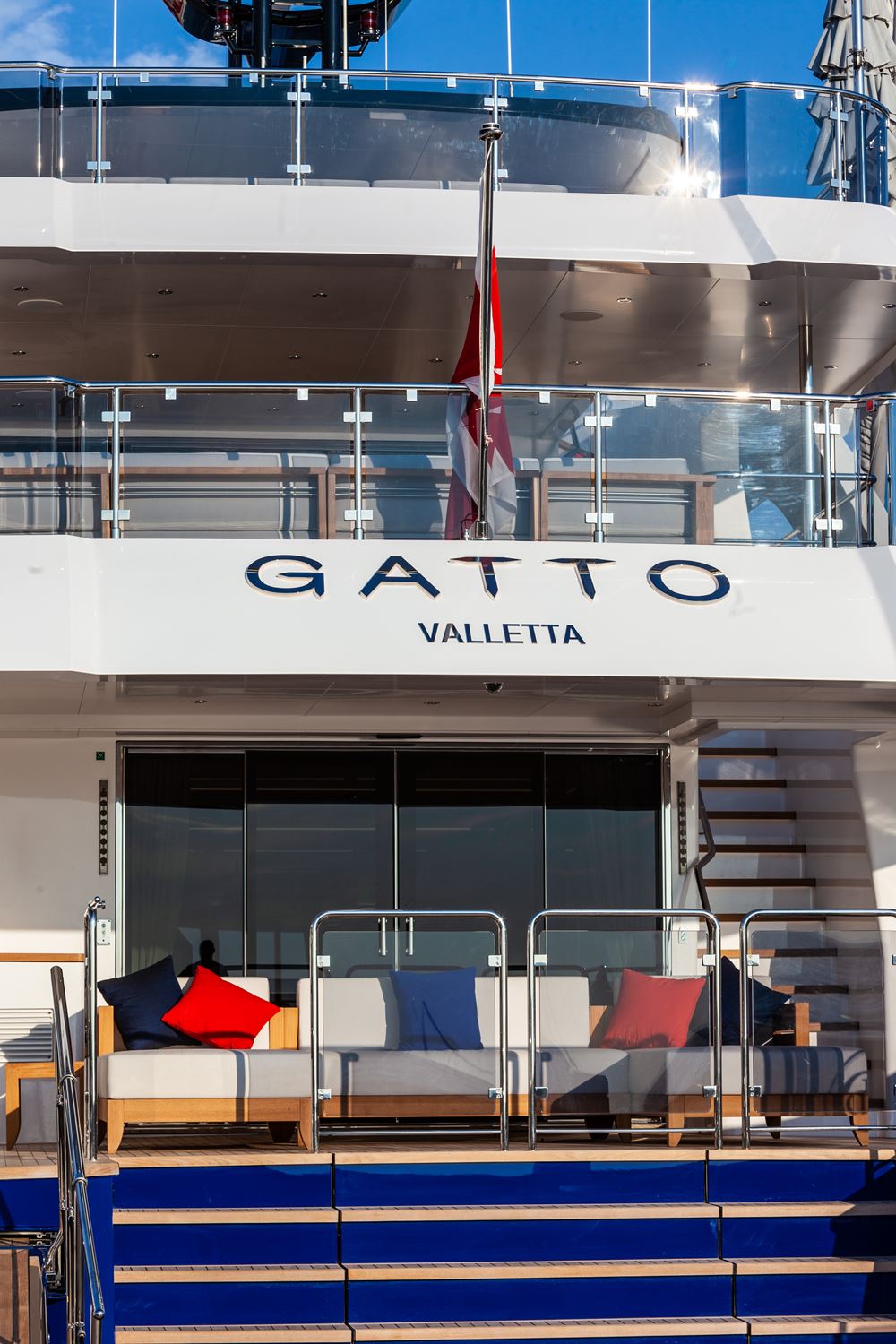 Real “little ship” looks characterize the profile of CdM’s first launch in its Acciaio series, although an elegant curved stem and flared bow cannot disguise how tall she is. Just 105 feet (32 meters) long, Gatto is a two-and-a-half decker with nearly 25 feet (7.6 meters) of beam and phenomenal interior volume for her length.
