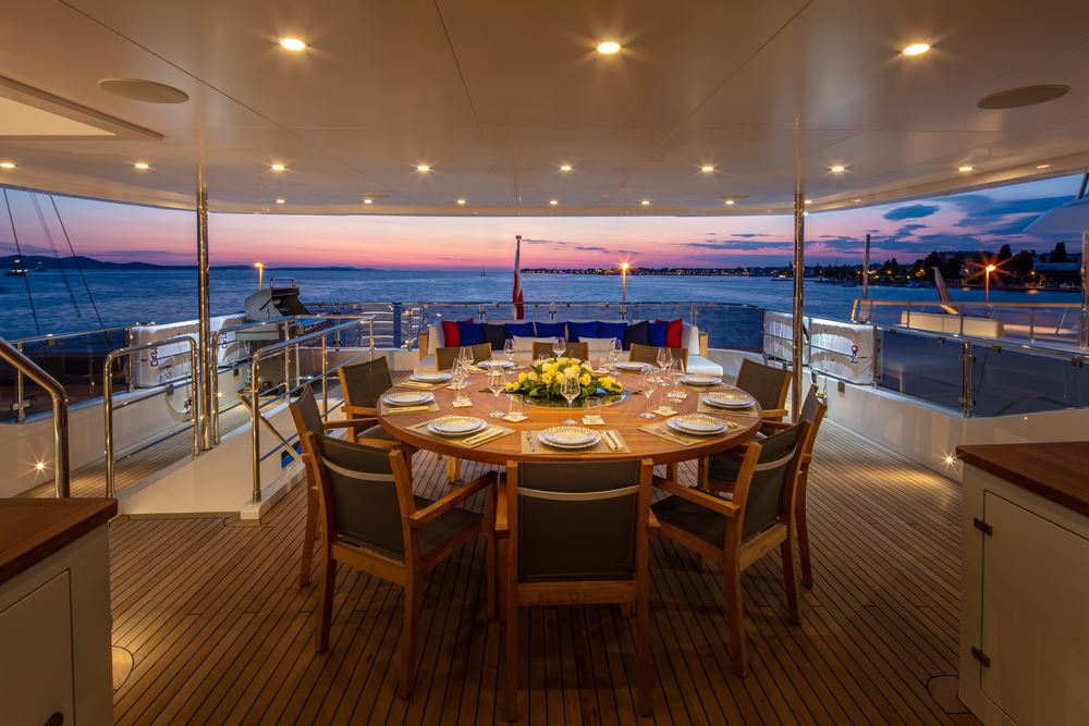 The solidity of Gatto’s construction and fit-out would do justice to a bomb shelter. It is one of the luxuries of a full-displacement yacht. Weight is hardly an issue. The interior alone of Gatto contains two tons of stainless steel.