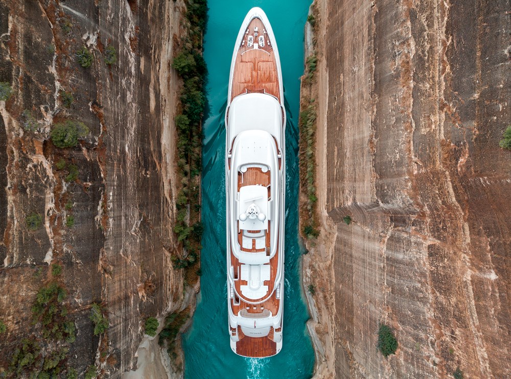Dragnis feels this way for a few reasons. First, built in just 28 months, the 279-foot (85-meter) O’Ptasia posted quite a challenge for Golden Yachts. One of the biggest challenges: needing to rely on abundant subcontractors and suppliers throughout Europe, the UK, and the USA. Greece, home to the shipyard, has few marine manufacturing firms. Furthermore, the entire interior was created in Italy. Even the initial mockup was created there, then shipped to Greece for fitting onboard the partially completed yacht for inspection and approval. In Dragnis’ hands now for nearly a year, O’Ptasia meets his desire for an attractive cruiser that’s simultaneously thoughtfully executed. She is as practical for him as she is for charter guests. What’s more, she also reflects a bit of whimsy.
