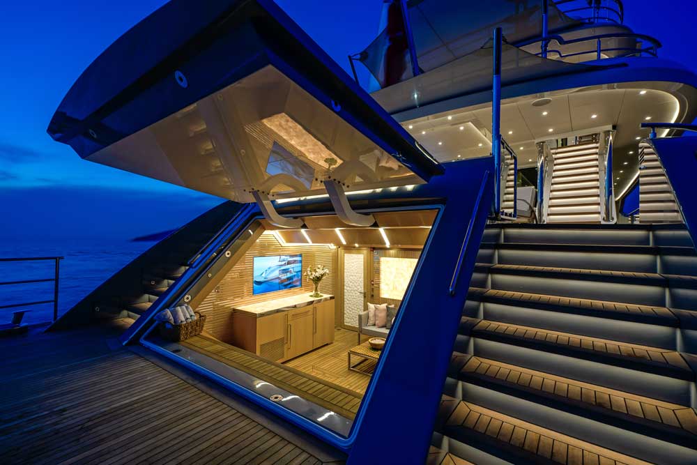However, Bilgin Yachts and Unique Yacht Design strove for decided differences. “After the success of Nerissa, we can’t wait to see how Lilium will affect the ones who see her,” says Emrecan Özgün, Unique Yacht Design’s founder and CEO. With the Bilgin Yacht Design Team, “we tried to imagine even the tiniest details through the look of a kaleidoscope,” he continues. “It was a challenging process to create luminous effect while deciding on proportion of each material.”