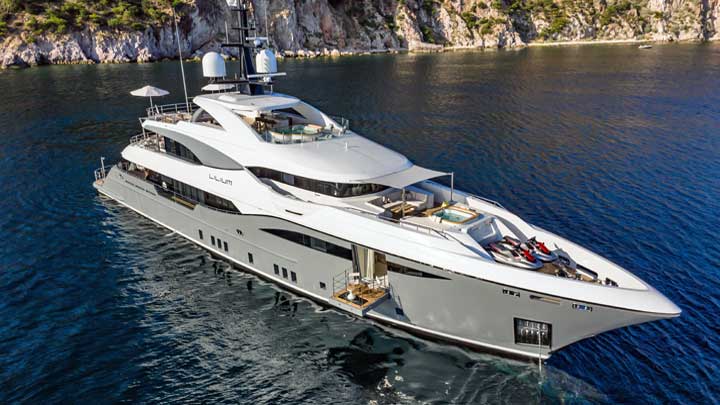Hull number two in the Bilgin 156 series, Lilium comes from a collaboration with Unique Yacht Design. Like her sister Nerissa (now Starburst III), she measures 156 feet (47.5 meters), further falling beneath the 500-gross-ton threshold. The steel displacement megayacht also similarly has twin MTUs for long-range cruising. Top speed should be 16 knots, with a best range around 4,000 nautical miles at 12 knots under half load.