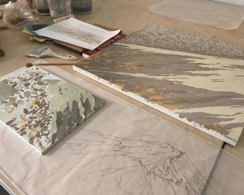 While you’re listening, further check out the gallery of images above. They reveal an Artelier-selected artist creating a stunning art wall in a stateroom.