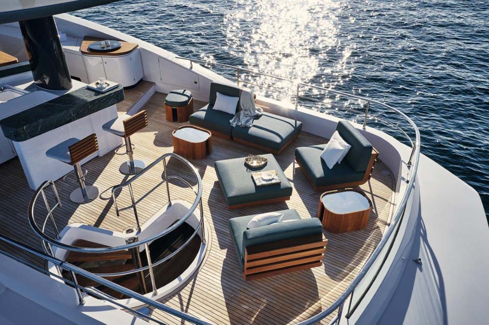 The Magellano series premiered more than a decade ago, albeit with much smaller boats. Each emphasizes long range, fittingly featuring traditional navetta (“shuttle” in Italian) styling cues. While the Magellano 25 Metri has some shippy looks, Azimut turned to Ken Freivokh Design for large-luxury-cruiser looks. Particularly, the British studio penned a superstructure with prominent glass, for the one-with-the-sea sensation so common among larger megayachts. As modern as that is, it blends with throwback nautical style, notably the rounded ports below decks and teak slats aft on the superstructure.